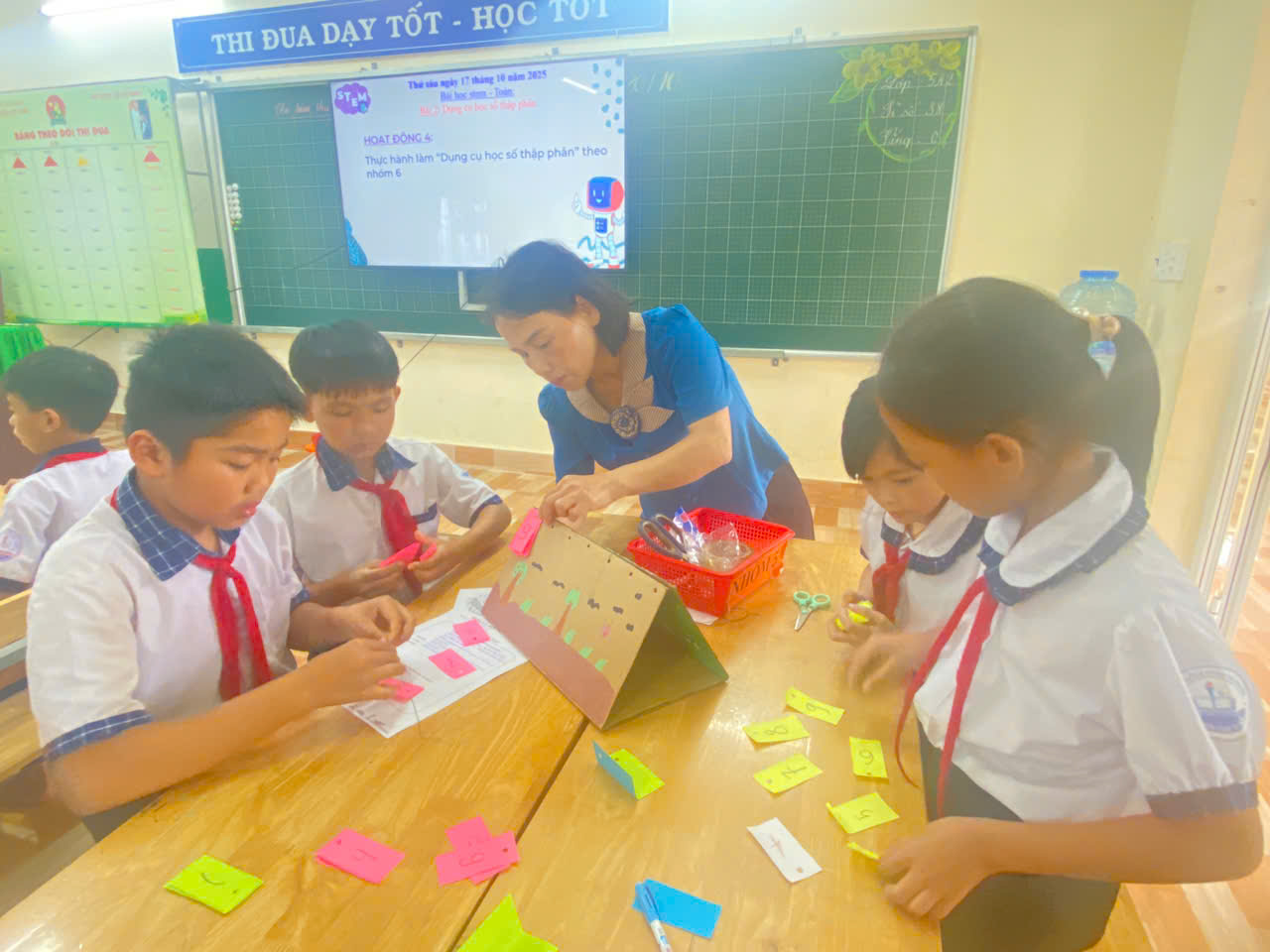 Chiều thứ Sáu, ngày 17/10/2025, Trường tiểu học Nguyễn Viết Xuân đã tổ chức hoạt động “ Sinh hoạt chuyên môn theo hướng nghiên cứu bài học” với chủ đề “ Chào mừng ngày Phụ nữ Việt Nam 20/10”. Nhờ có kinh nghiệm chuyên môn vững vàng; sự sáng tạo trong đổi mới hình thức tổ chức dạy học và ứng dụng trí tuệ nhân tạo (AI) thành công, cô giáo Lê Thị Hương (GVCN lớp 1A1) và cô giáo Dương Thị Hiền (GVCN lớp 5A2), đã thực hiện thành công 2 Chuyên đề: CĐ1: Lồng ghép Quốc phòng an ninh và ứng dụng công nghệ AI trong dạy học môn TV lớp 1; CĐ2: Dạy học Stem – Dụng cụ học số thập phân. Tiết học sôi nổi, đầy hứng thú không chỉ góp phần nâng cao chất lượng dạy học mà còn thể hiện sự đổi mới trong sinh hoạt chuyên môn, đổi mới hình thức tổ chức dạy học, giúp học sinh học tập tích cực chủ động và được phát triển toàn diện.